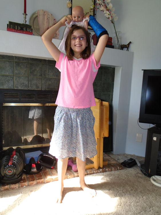 It was a bad break, but she was a trooper through the whole ordeal. The doctors and nurses all marveled at her bubbly attitude and threshold for pain. (At one point, Kansas Dad even wondered if there might be nerve damage because she was so uncomplaining. When they assured them her nerves were fine, he started to think about Wolverine...) An adult would have needed surgery, but she managed well with a couple of different casts. In the end, she was wearing a waterproof brace, which meant we could sneak in some end-of-summer swimming. Hooray!